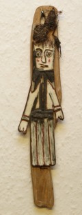 På turene finder jeg mange ting, så som træ, aviser og papir, som jeg bruger til værkerne. Er ofte på ture her i landet. På Langeland samler jeg hul-sten og på Skagen finder jeg træstykker.